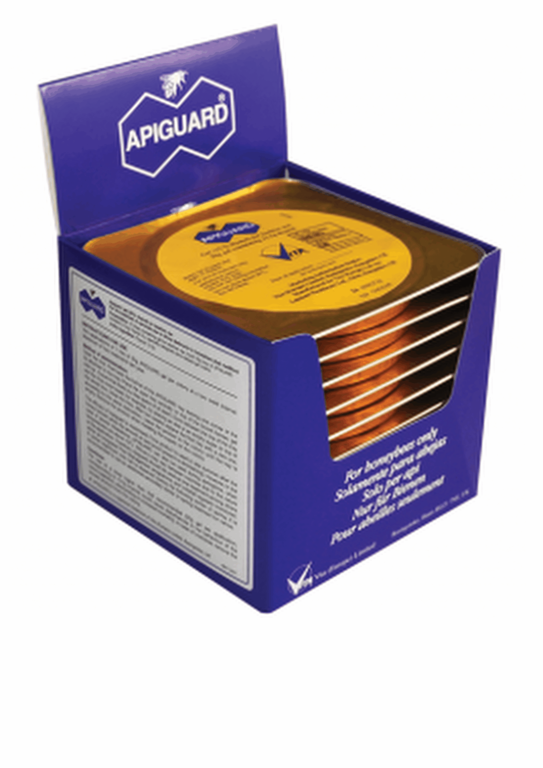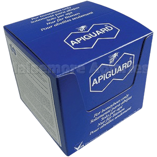 Apiguard gel comes in 50g ready-to-use aluminium trays (two will treat one standard colony). In certain markets, Apiguard is also available in 3kg tubs and 25g sachets.