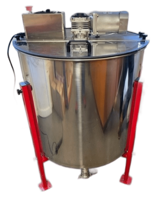 Budget 6 Frame Stainless Steel Radial Extractor (Electric), reversible motor, comes with legs and a stainless steel honey gate. There is 26cm from floor to bottom of honey tap.