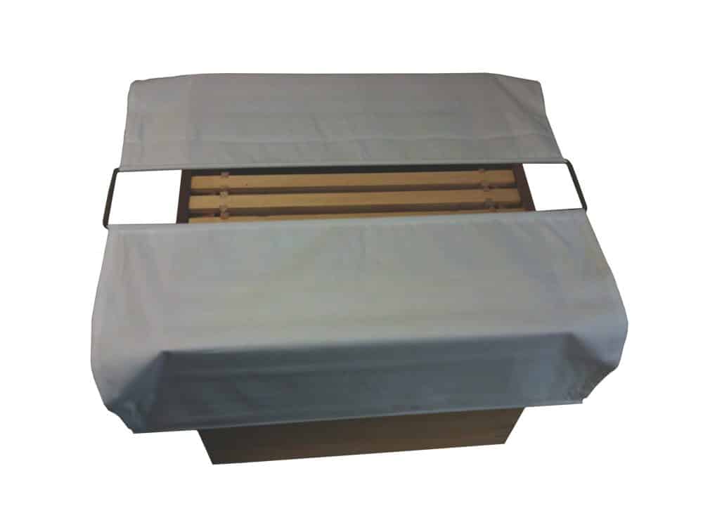 Made of canvas with stainless steel rods at each end to weigh the cloth down and is used to put over the frames of the brood chamber to allow a frame to be taken out at one time. (hive and frames not included)