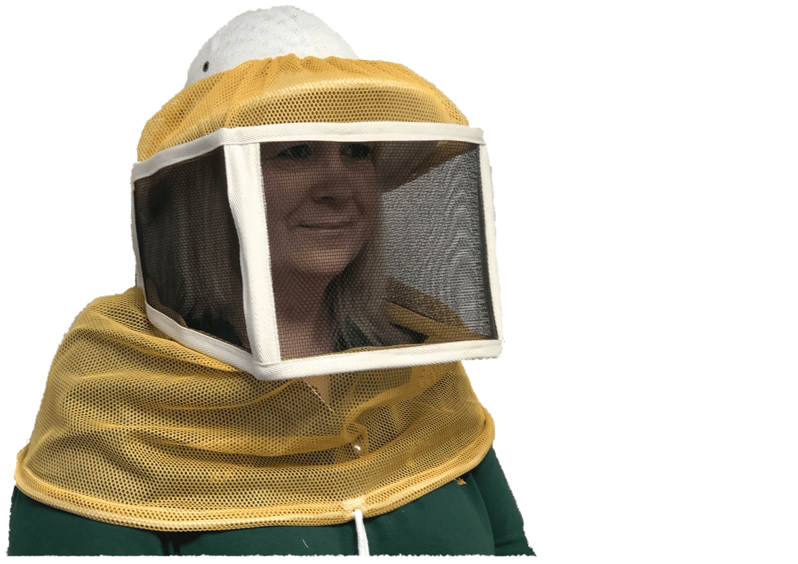 One size. Made of black mesh panels and is used in conjunction with our beekeeping helmet. (helmet not included)