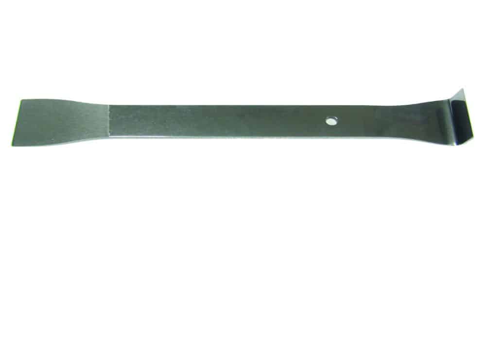 Made of stainless steel and is 185mm long and 26mm wide (scraper end).